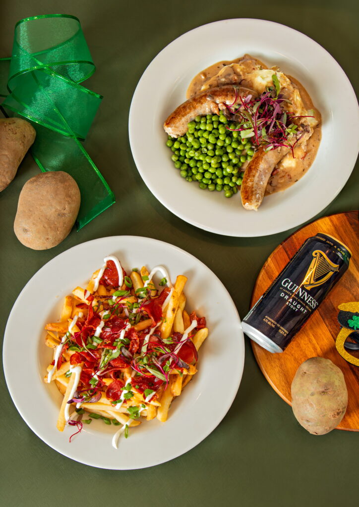 • Irish Poutine – A decadent take on the Canadian favorite: crispy fries topped with Guinness cheddar cheese sauce, corned beef chips, Jeson crema, and green onions. Perfect for sharing… or not.