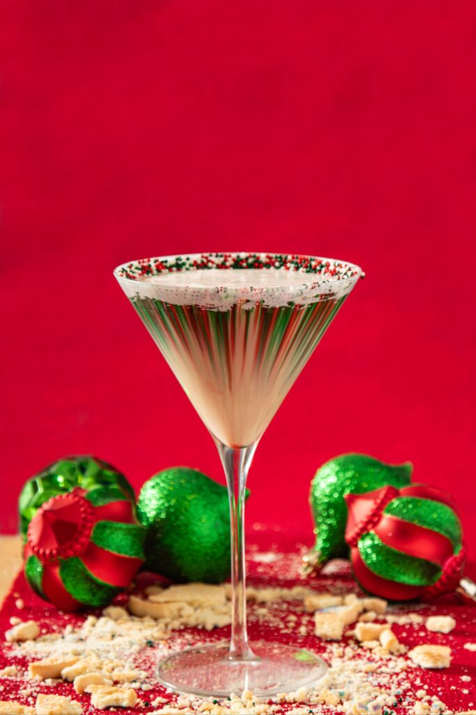 The Sugar Cookie Martini captures the nostalgic flavors of the season in a smooth, dessert-inspired cocktail. Made with Baileys, amaretto, and vanilla vodka, this martini delivers a rich, creamy sip with just the right touch of sweetness. Can’t forget that it’s finished with a marshmallow fluff–coated rim and festive sprinkles. It truly is as indulgent as it is eye-catching—perfect for anyone craving a holiday treat in cocktail form.
